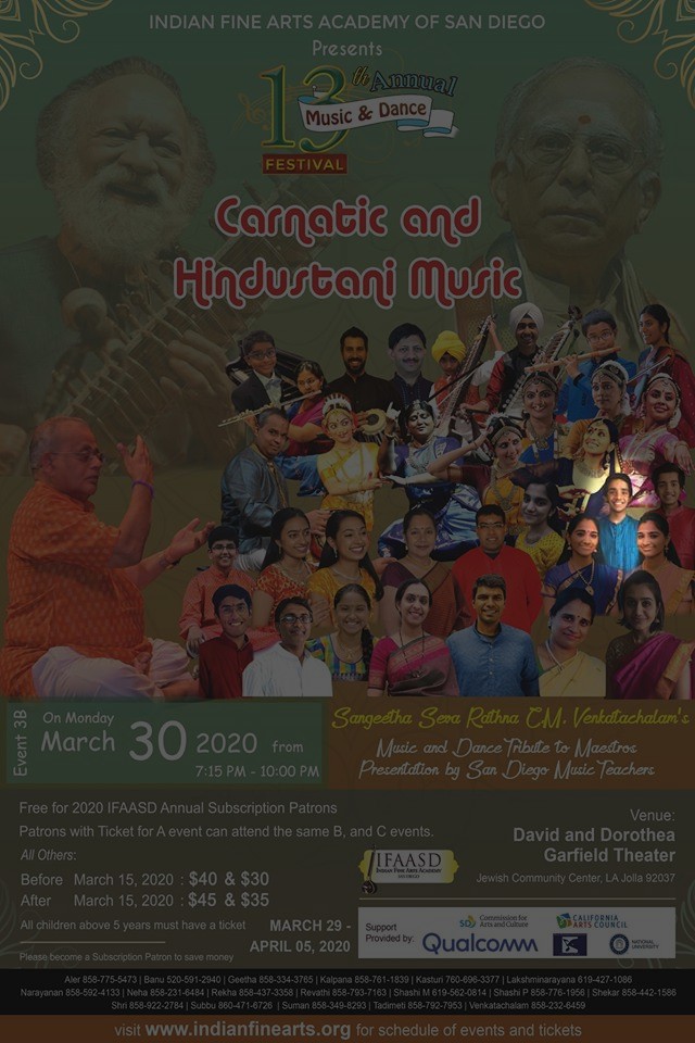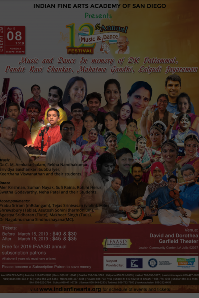 - Invited to perform at the prestigious annual festival of the Indian Fine Arts Academy of San Diego for each of the past several years